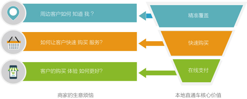 百度本地直通车,是百度推出的帮助本地服务商家高效获取客户、提高营业收入的一种新型推广方式。通过百度移动搜索推广与“手机百度”、“百度地图”、“百度糯米”三大应用推荐展示的方式,将商家信息精准地推广给周边有相应需求的客户,促使客户以在线支付、到店付等方式完成交易,最终达到帮助商家开拓生意的效果。